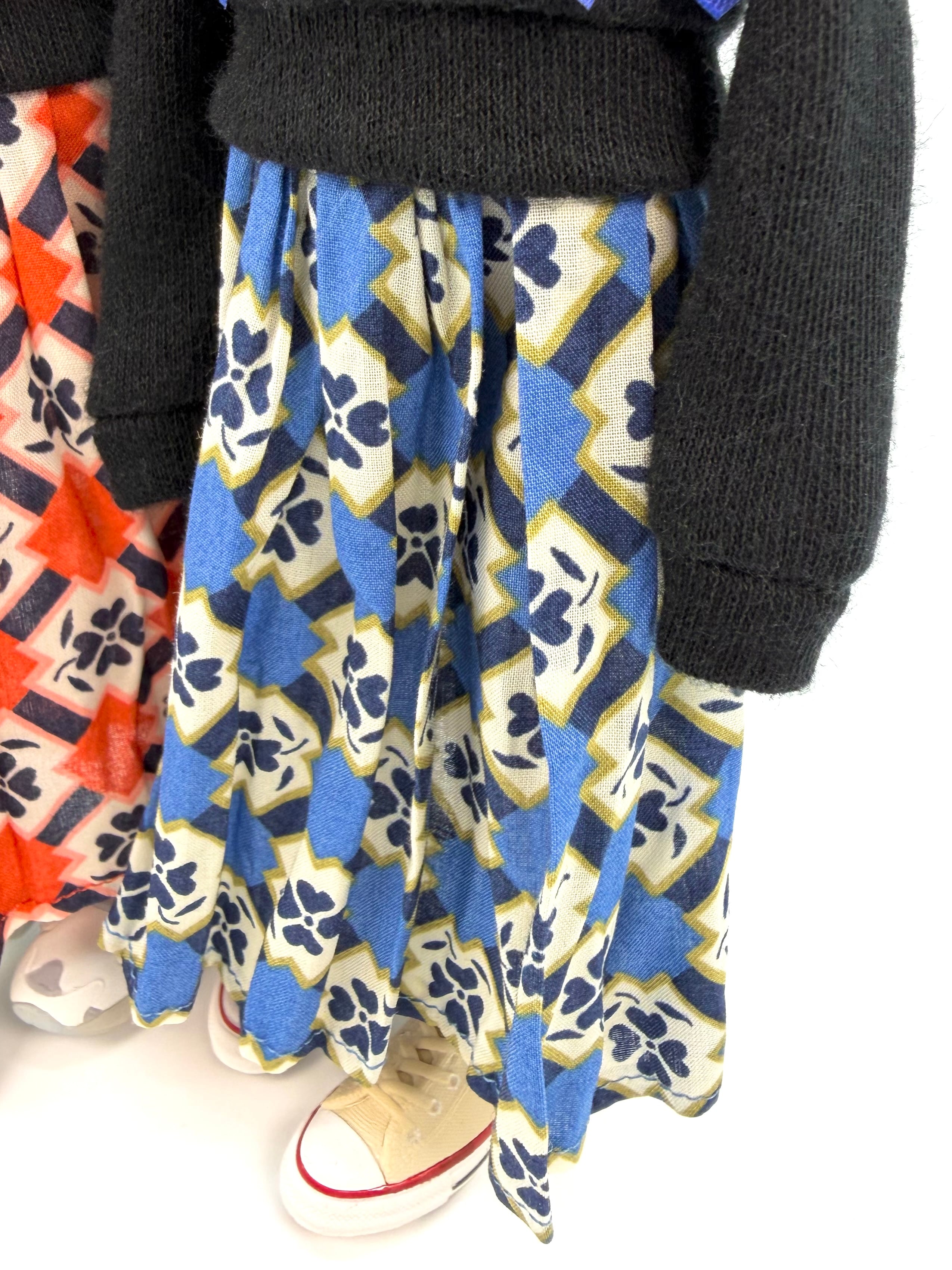 復刻版初代ちゃん(21cmドール)サイズの、くま耳リボンパーカーと、シワ加工ロングスカートの2点セット【ブルー】です。